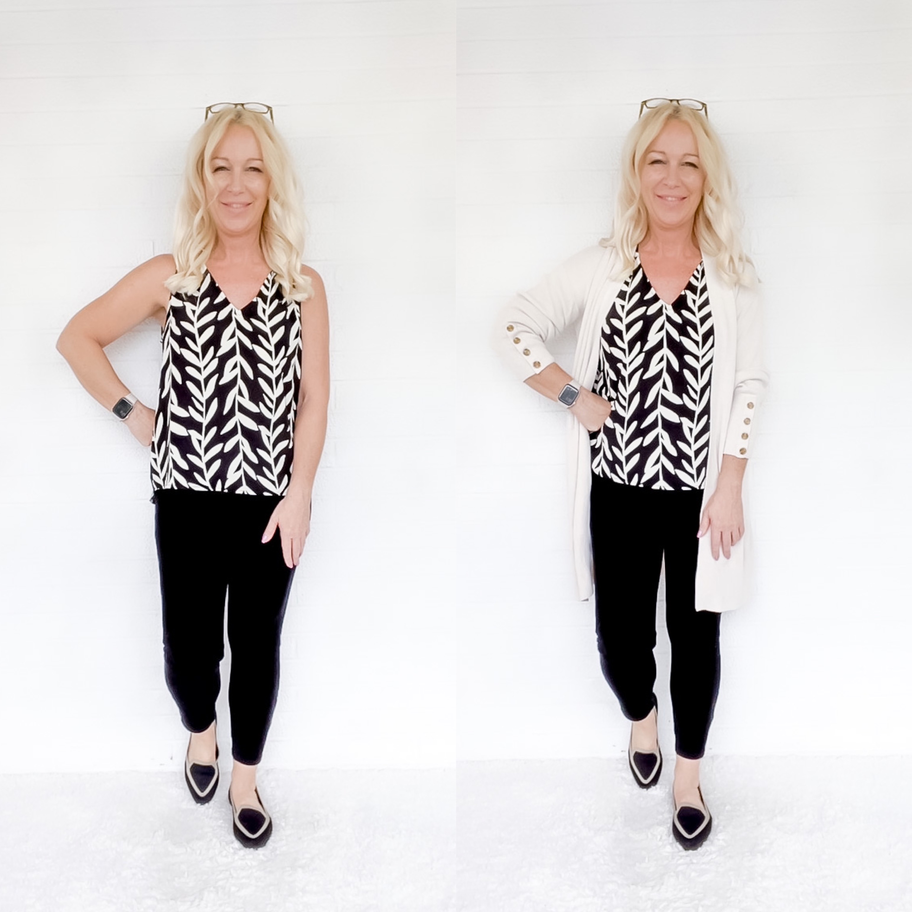 With that in mind, here are some stylish ideas about how to apply layers for the office. My summer office uniform is a sleeveless blouse, a Cardigan or blazer over top, a pair of soft pants, and super comfy loafers. While I tend to work in the sleeveless blouse, I generally keep that Cardigan or a Blazer on the back of my office chair at all times for when the office gets a little chilly. Shop these workwear outfits here.