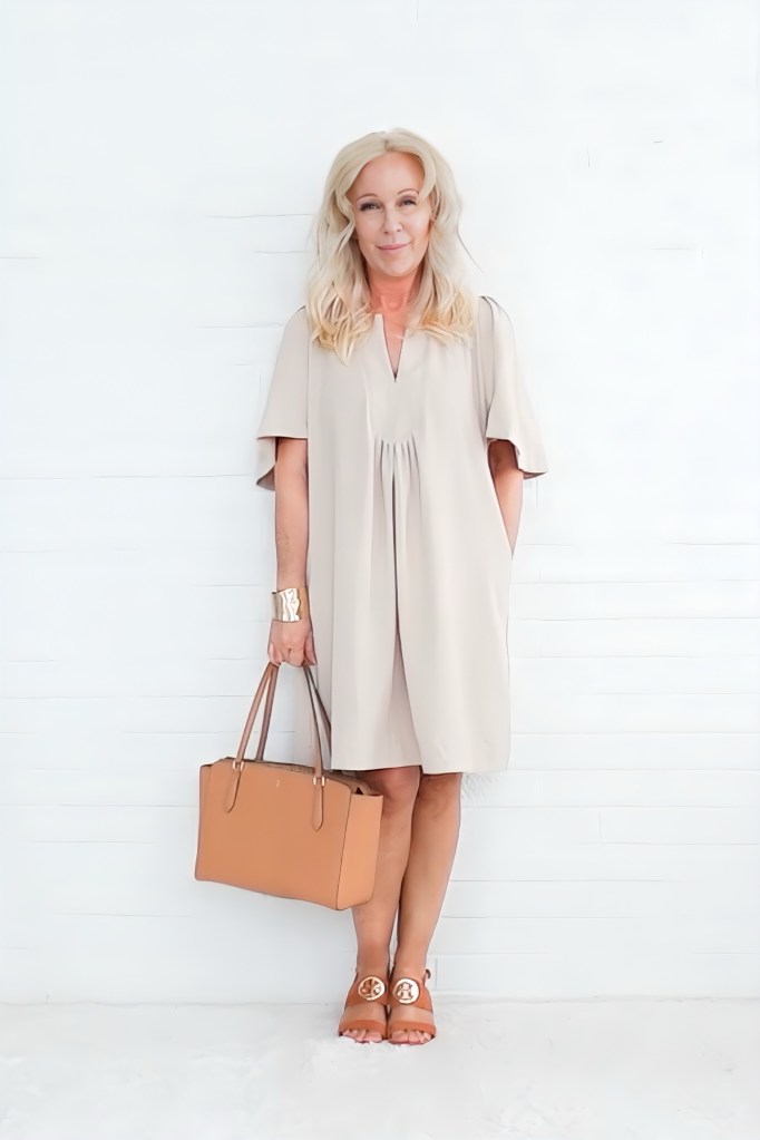3/4 Sleeve A-Line Dress + Similar Handbag + Slide Sandals