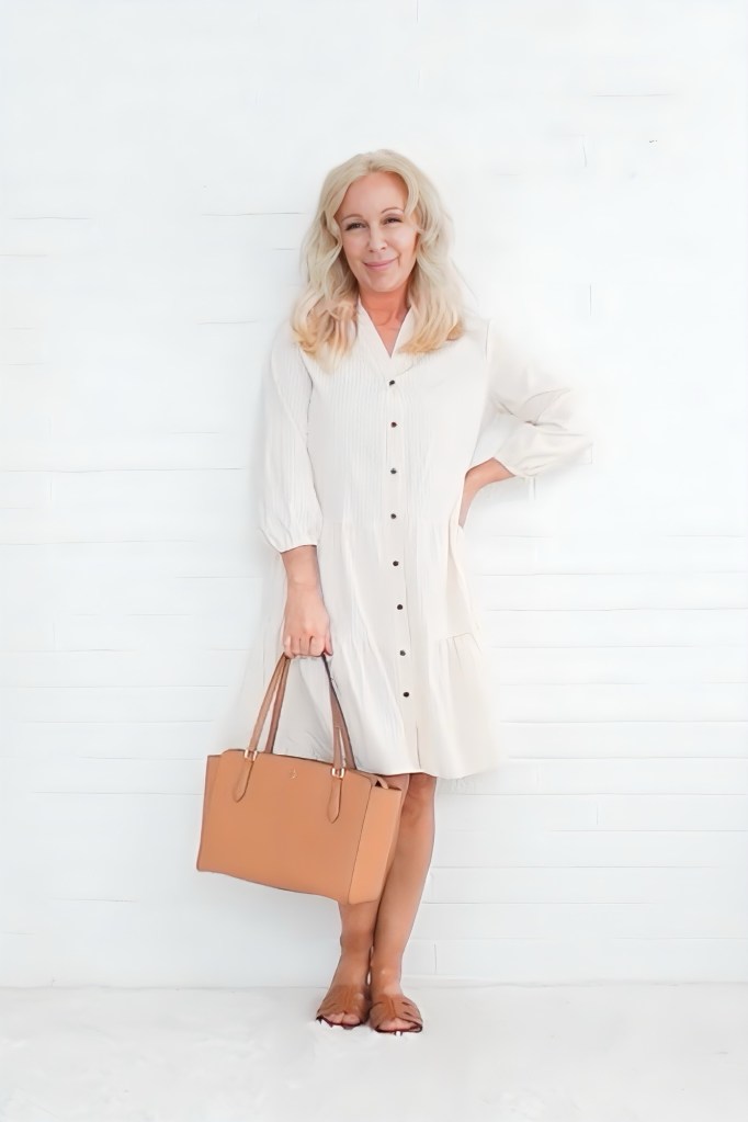 1. I follow you on multiple platforms. Thanks for all of your advice. The Amazon denim and curdory dresses appear to link to a different dress than you are wearing. They are cut up at the sides and have a more “shirt” style. What you are pictured wearing appears to be cut straight across which I much prefer. Do you have a link to the dresses you are modeling?
