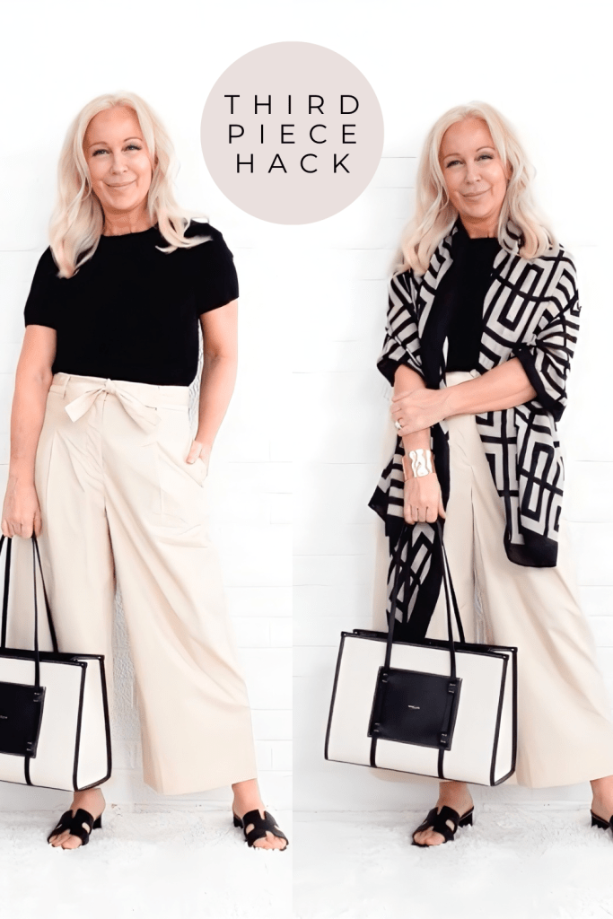 Adding that “third piece” is a quick fix when your outfit “just isn’t outfitting” or when something feels off about your outfit.
